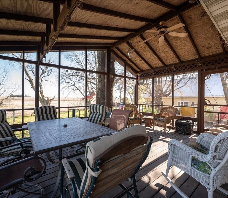 Escape to peaceful country living on 3.13 acres just 3/4 mile off Highway 218 offering privacy with convenient access. This 3-bed home with a 4th non-conforming bedroom and 2.5 baths blends comfort and rural functionality. Inside you’ll find built-in closets and dressers with pocket doors throughout, remodeled bathrooms, and updated 200-amp electrical service. The home features electric heat with dual meters, with the option to convert to natural gas. Enjoy quiet mornings and summer evenings on the large screened-in deck, overlooking the countryside. The property is ideal for a homestead lifestyle with raised garden beds, playground equipment, henhouse, hog house with waterer, grain bin on concrete, calf shed with cement, barn with power and outside waterer, and a machine shed with power and heat. All roofs were replaced after the derecho. Home also includes a reverse osmosis system and whole-house water filter.